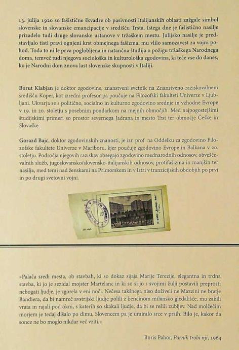 OGENJ, KI JE ZAJEL EVROPO; NARODNI DOM V TRSTU 1920 - 2020, Borut Klab