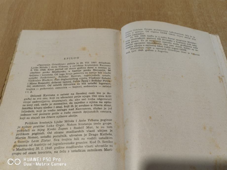 Infiltration of the Ustashas (called Operation April 10[note 1]) was initiated with the consent of Ante Pavelić (after its failure, he distanced himself from it). The action was led by Božidar Kavran. The first group was arrested on Mount Papuk. UDBA launched Operation Gvardijan to lure the escaped Ustashas by sending false messages, during which a total of 19 Ustasha groups were arrested. The operation ended with Kavran's arrest. The Ustashas were tried in August 1948. Most were sentenced to death, while others were sent to prison. A total of 96 Ustashas were arrested, killed, or executed including former concentration camp commandants Ante Vrban and Ljubo Miloš.