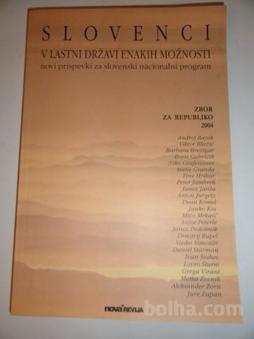 Knjiga SLOVENCI V LASTNI DRŽAVI ENAKIH MOŽNOSTI, NOVI PRISPEVKI ZA SLOVENSKI NACIONALNI PROGRAM, ZBOR ZA REPUBLIKO, VEČ AVTORJEV, NOVA REVIJA 2004, broširana, lepo ohranjena.
