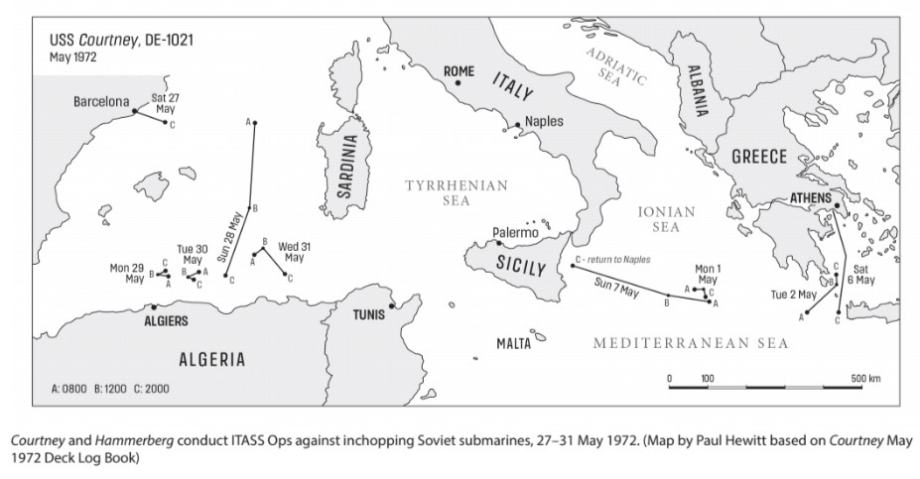 These ‘Tailships’ entered the Med in 1970. It was then that the US and NATO navies operated in a naval environment characterised by the most intense concentration of Soviet submarines and surface ships outside of Soviet home waters. The Mediterranean was the focal point in the great naval rivalry of the United States, with its NATO allies, against the Soviet Union’s Voyenno-morskoi flot (Military Maritime Fleet).