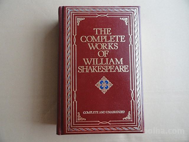 Knjiga THE COMPLETE WORKS OF WILLIAM SHAKERSPEARE, COMPLETE AND UNABRIDGED, NEW YORK, v angleškem jeziku, trde platnice, dobro ohranjena, umetno usnje.