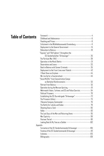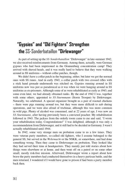 A rare look inside the Sonderkommando "Dirlewanger," the SS anti-partisan unit notorious for atrocities in Poland and Russia during World War II. These memoirs were written by a former member of the unit from its formation in 1940 to the end of the war and took part in nearly all its operations. A first hand account of the brutal and barbaric methods used by Dirlewanger against partisans – methods that appalled even some SS commanders – are revealed here in this memoir. SS-Sonderkommando "Dirlewanger" was originally manned by convicted poachers, however as the war progressed replacements were found by emptying prisons and filling the ranks with more hardened criminals. Here are the chilling recollections of a soldier in the SS-Sonderkommando "Dirlewanger" during the Polish and Russian campaigns, the 1944 Warsaw uprising and the final battles near Berlin.