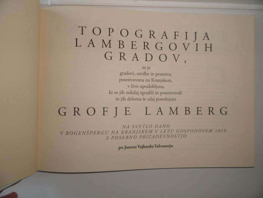 Knjigi TOPOGRAFIJA LAMBERGOVIH GRADOV, GROFJE LAMBERG PO JANEZU VAJKARDU VALVAZORJU 1619 IN TOPOGRAFIJA SALZBURŠKE KOROŠKE PO JANEZU VAJKARDU VALVAZORJU 1681, trde platnice, v darilni škatli, samo dvesto izvodov, dobro ohranjeno, Fundacija Janeza Vajkarda Valvasorja 2014.