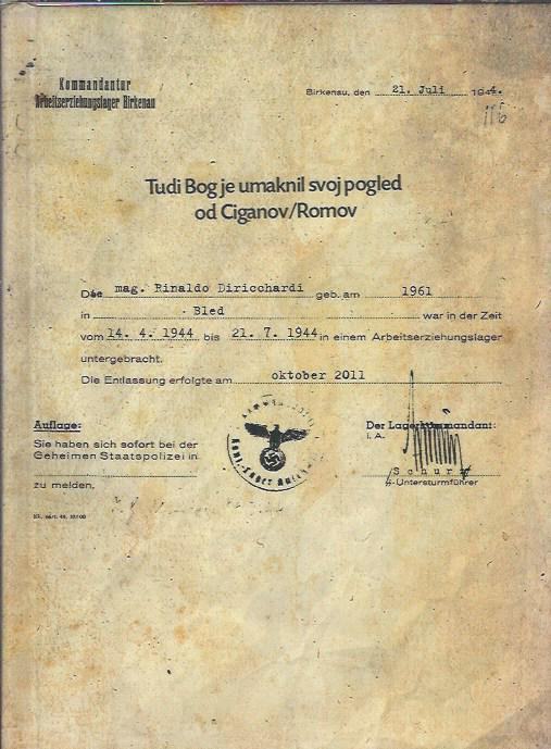 Naslov Tudi bog je umaknil svoj pogled od Ciganov/Romov : Naci holokausta : Berša bibahtalipe Romenghere / Rinaldo Diricchardi Muzga ; [fotografije Sion Soeters in Sebastian Žetko]