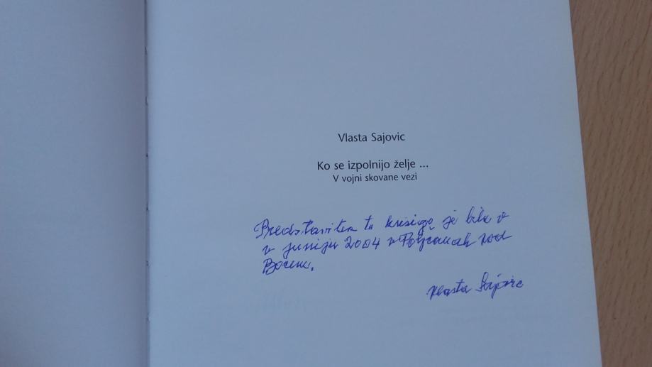 Vlasta Sajovic:Ko se izpolnijo želje...V vojni skovane vezi.Posvetilo