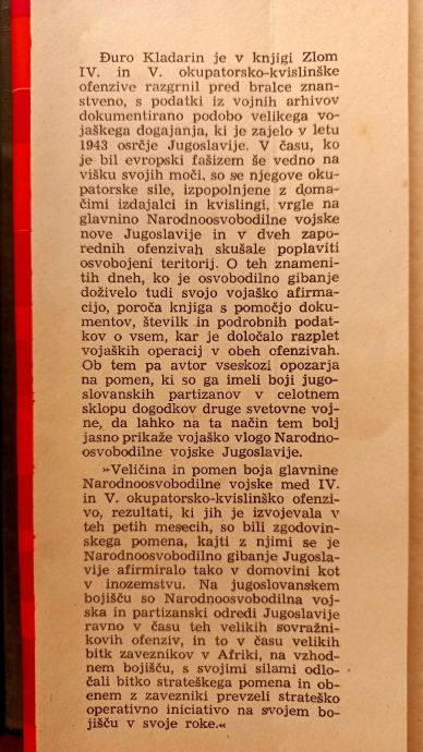 Zlom 4. in 5. okupatorsko-kvizlinške ofenzive / Đuro Kladarin. - Ljubljana : DZS, 1959.