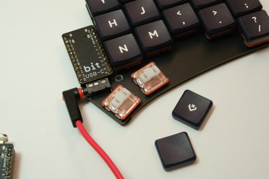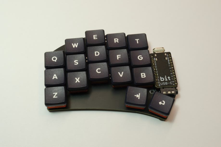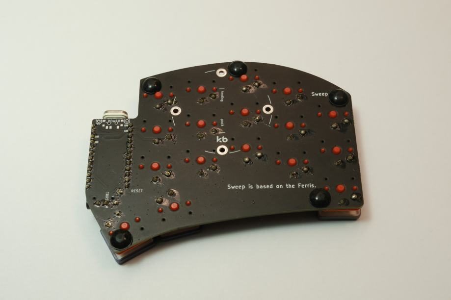 - Stikala za tipke so spajkana na PCB plosco in so Kailh LP Choc Pro Red (linearni 35g)