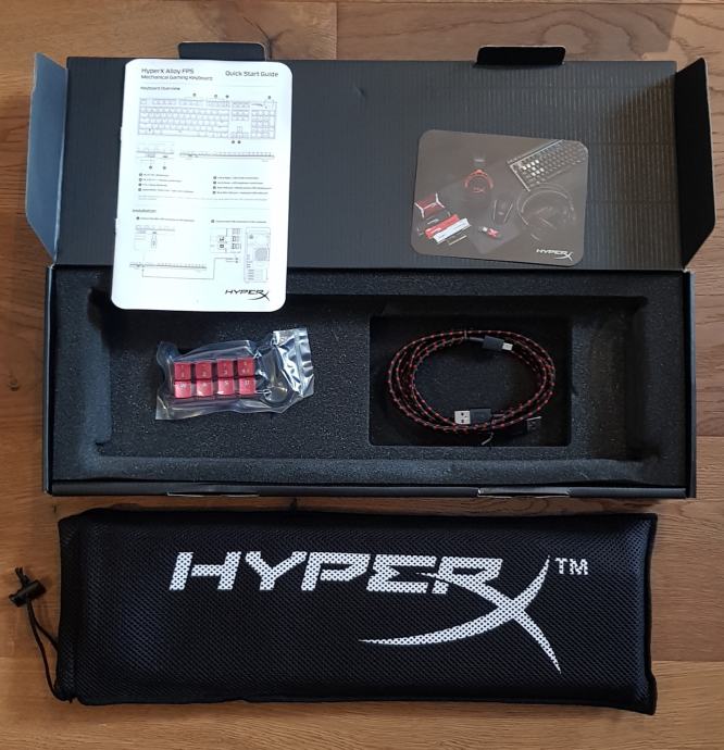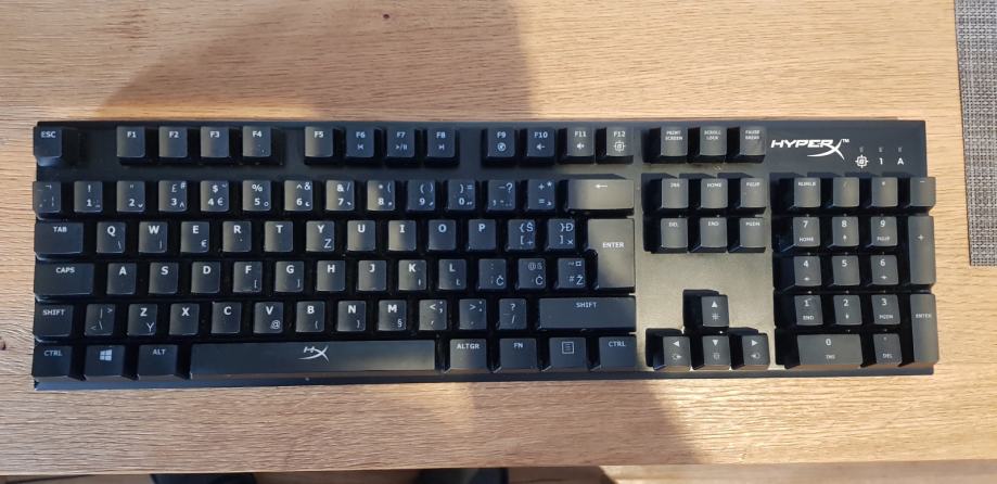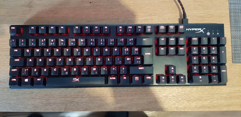Prodam tipkovnico HyperX Alloy FPS. Zelo dobro ohranjena, le spodnji desni ENTER gumb se občasno zatika. Ker je tipkovnica mehanska je tudi malo bolj glasna ob tipkanju. Ima možnost vklopa LED lučk pod tipkami, ki pomagajo pri tipkanju v temi. Priložen je tudi kvaliteten kabel za tipkovnico, vrečka za tipkovnico in dodatne W,A,S,D tipke. Tipkovnica je bila kupljena pred 2 leti (uporabljala se je cca 6 mesecev).