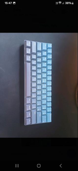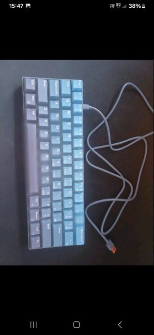 Prodam kvalitetno mehansko tipkovnico kompaktnega dizajna (60%), idealna za tiste, ki si želijo več prostora na mizi in minimalističen videz. Tipkovnica je ožičena preko USB-C kabla (priložen), z modro obarvanim USB-A priključkom. Cena ni zadnja