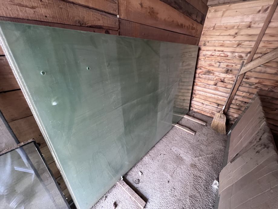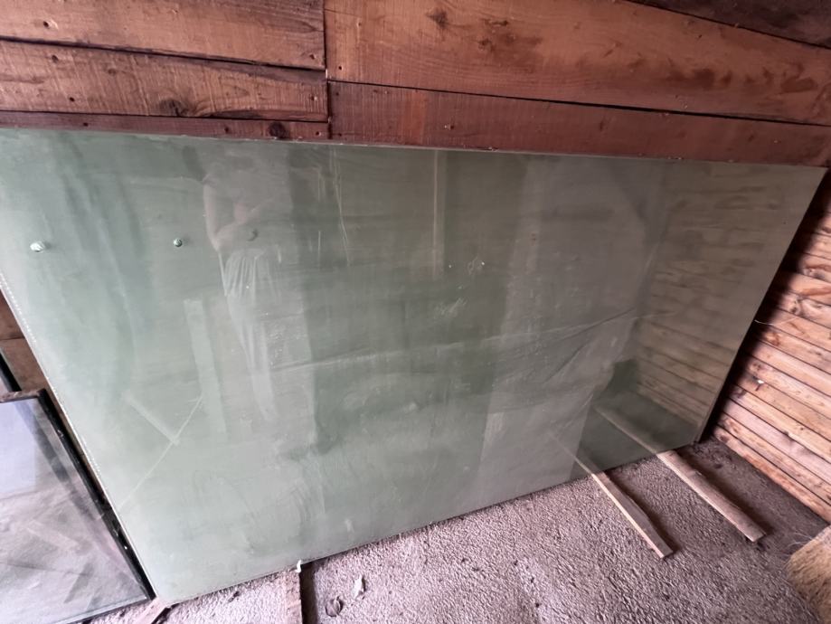 Prodam steklo kaljeno dvojno lepljeno, sitotisk za nadstresek. Dimenzije stekla 248,5x140cm, debeline 16mm. Luknje dimenzij: luknja desno 10,5 cm gor 20 cm, luknji levo 8, 31, -20 cm. 2 komada, cena na komad.