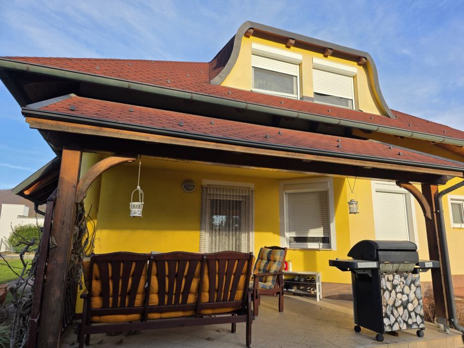 Prodam nadstrešek za teraso 5,3 m x 2,7 nosilna stebra, lega in špirovci so iz lepljenca.