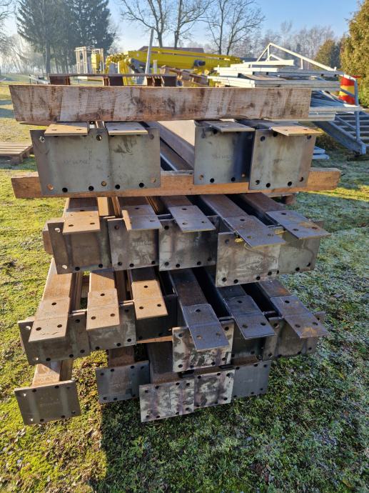 prodam več kovinskih stebrov v izmerah višina 3800 mm, sirina 180 mm in debelina 100 mm na zgornji in spodnji strani podstavek v izmeri