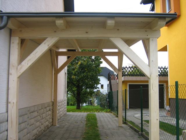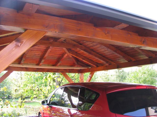 Strokovno izdelan leseni nadstrešekiz kvalitetno sušenega lesa.