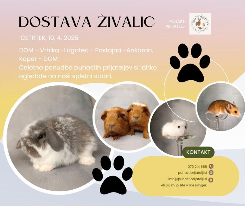Možnost tudi dostave po skoraj celi SLO. Prevzem na dogovorjeni lokaciji.
