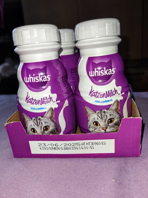 Zaradi neuporabe prodam whiskas mačje mleko 5x 200 ml. Možen nakup posamičnega (1,40€) ali pa vseh (7€)