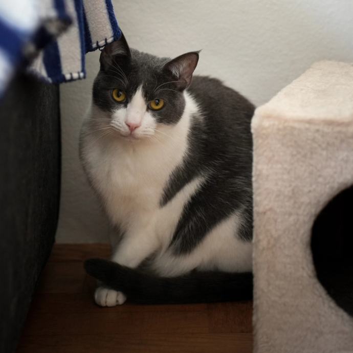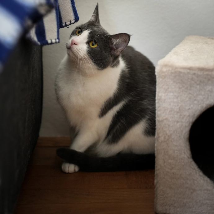 Ko je Lujza s svojimi mucki prišla v novo okolje, je bila sprva zelo sumničava in negotova, a smo ji potrpežljivo dajali prostor in čas, da se je ob svoji skrbnici počutila varno. Sčasoma se je vedno bolj približevala, dokler se ni na neki točki odločila, da jo bo spet začela božati in si povrnila vero v ljudi. Zdaj se nenehno vrti med nogami, ko pridejo obiskovalci in skrbniki. Rada je deležna pozornosti in je sprva malo previdna, ali pa, ko vidi je vse v redo, samo čaka na stik in lep poljubček .