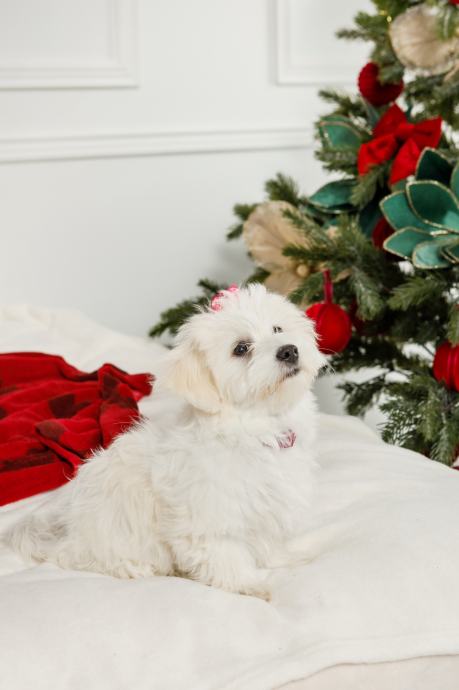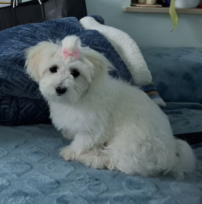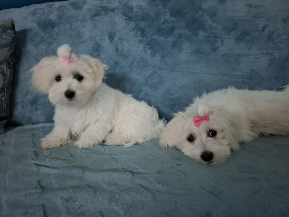 Sva maltežanki stari 3 mesece, Nira in Moon. Sva čistokrvni, vajeni kopanja, sprehajanja, rednega česanja ter radi imava objeme in poljubčke.