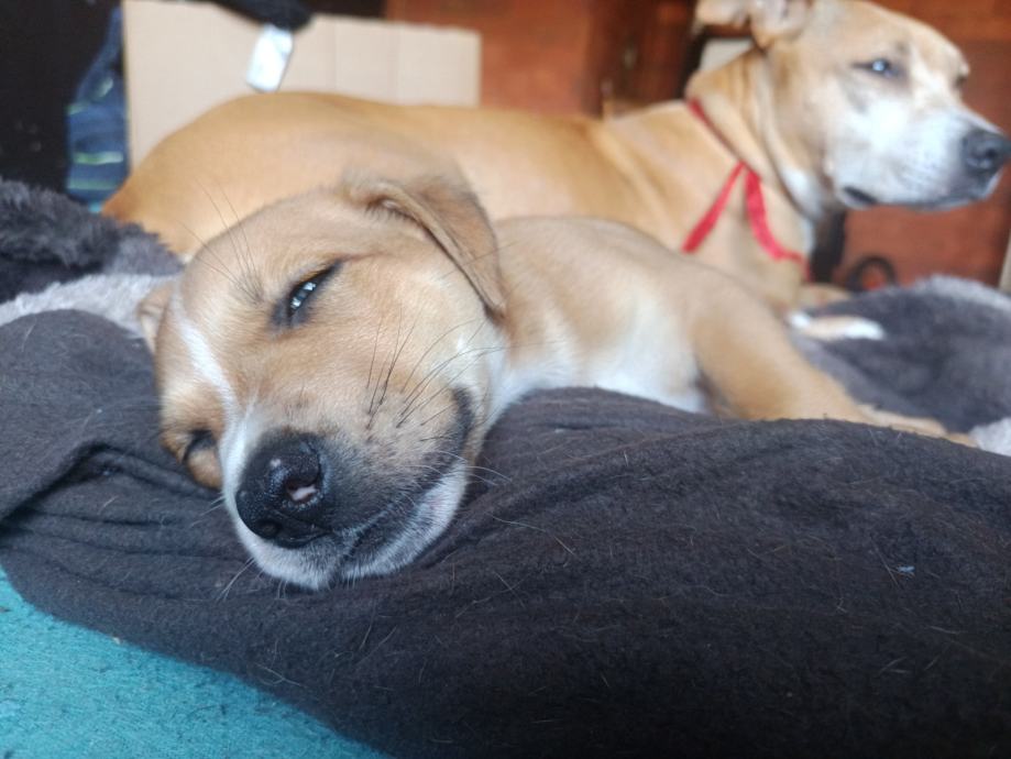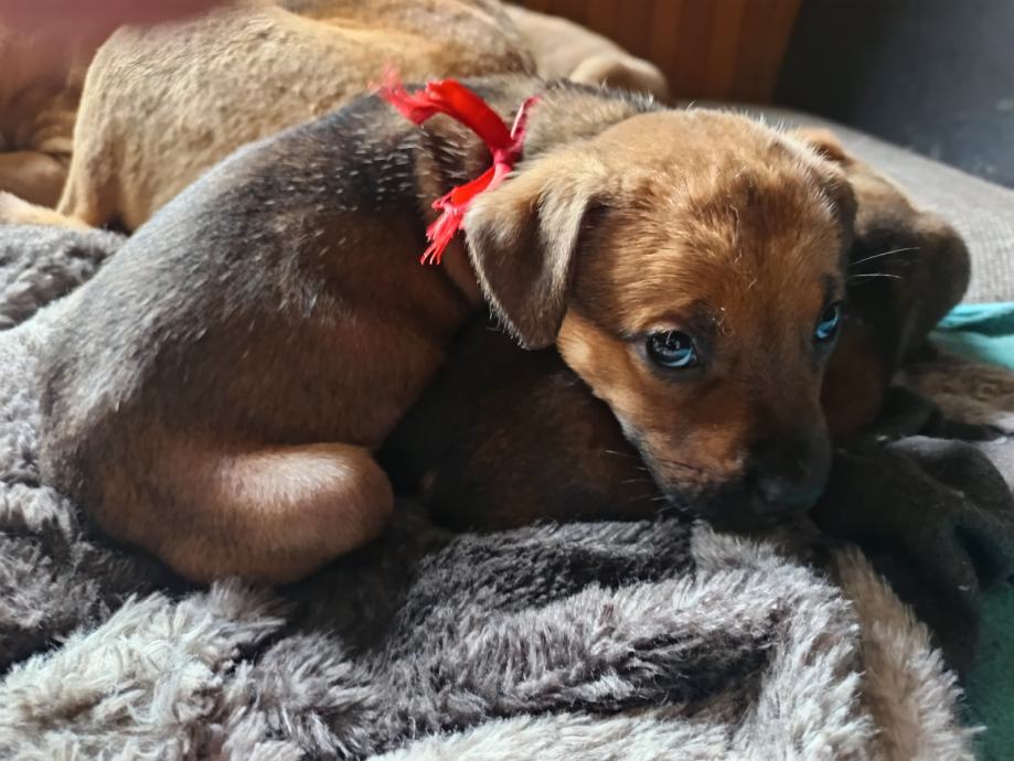 Podarimo 1 psičko temne barve in enega psa (bel nos) pasme angleški stafford. Psi so brez rodovnika cepljeni čipirani in že sami jedo ter pijejo.