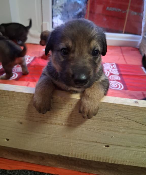 Mati je manekenka, češko slovaški volčjak z rodovnikom, oče pa črnodlaki frajer srednje rasti, mešanec, ki je prišel zgolj na obisk, a nam ni pustil telefonske številke.