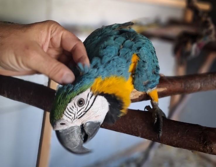 Ročno hranjena ara samec izvaljen maja 2024. Zelo prijazen in carkljiv že pripravljen na nov dom, z vso potrebno dokumentacijo.