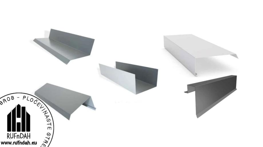 kleparska vetrna obroba, končna obroba, obroba za dimnik, obroba tegola, alu obroba, zidna obroba, diletacijska obroba, obroba za strešna okna, dimniška obroba, pločevinasta kapa za ograjo, kotniki iz pločevine, okenska polica, žlota, slemenjak, odkapna pločevina, snegolov, zapirala pri montaži PVC oken in vrat.