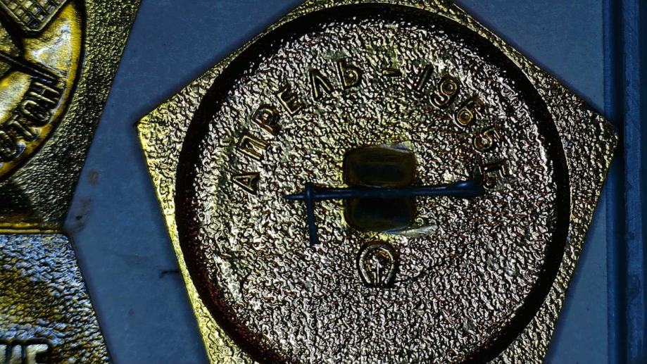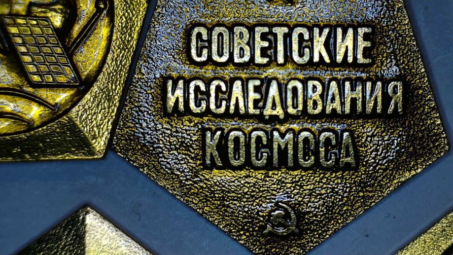 - Osrednja značka: "Советские исследования космоса" (Sovjetske raziskave vesolja)