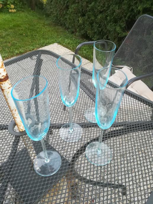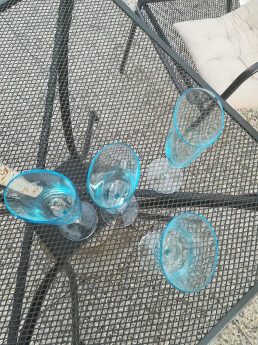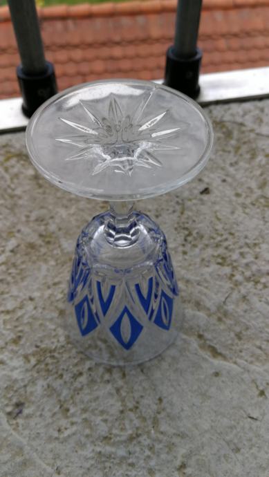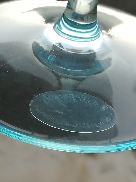 - set starih kozarcev, stari modri kozarci kristalin, crystalline handmade in SLOVENIA, dolgi peclji 4 kom za 29,99€, - NI VEČ!!,