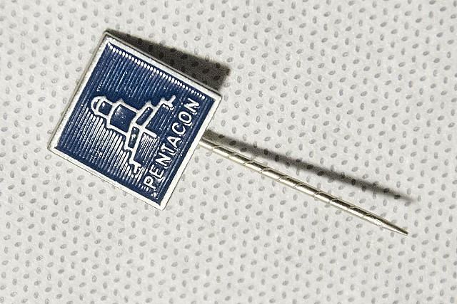 Modra, kovinska značka Pentacon ( Praktica, proizvodnja fotoaparatov in objektivov ), vzhodna nemčija ( DDR Dresden ). Ne kaže znakov staranja - kot nova.