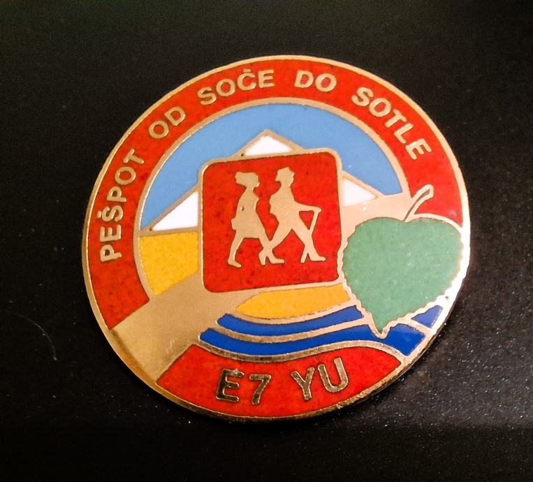 Prodam značko na fotografiji: Pešpot od Soče do Sotle E7 YU, ki so jo prejeli pohodniki, ki so opravili celotno pot. Premer 25 mm. Aurea Celje.