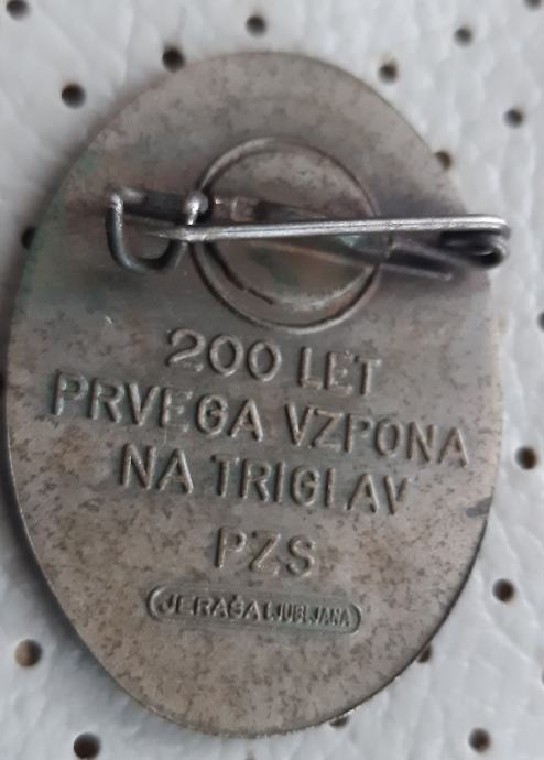 Na zadnji strani napis: 200 let prvega vzpona na Triglav PZS!