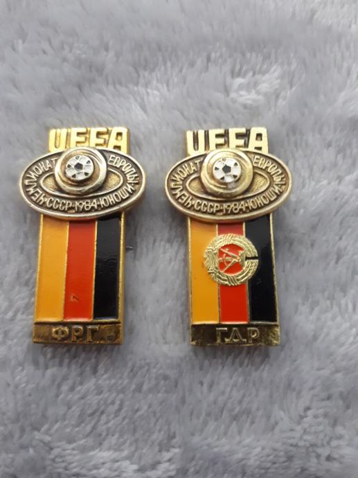 Prodam dve znački NOGOMETNI ZNAČKI NOGOMETNE REPREZENTANCE UEFA EVROPSKO NOGOMETNO PRVENSTVO 1984 NEMČIJA tel 051 655 179