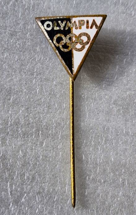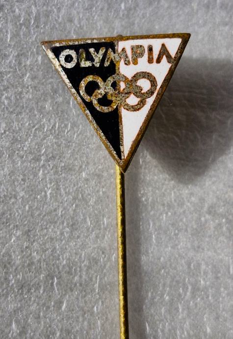 Stara originalna zelo redka slovenska dvobarvna črno-bela emajlirana nogometna značka Nogometni klub OLYMPIA LJUBLJANA. Značka iz let po 1961, domnevno prva, ko je vodilni nogometni klub v Ljubljani prevzel ime AŠK Olympia.