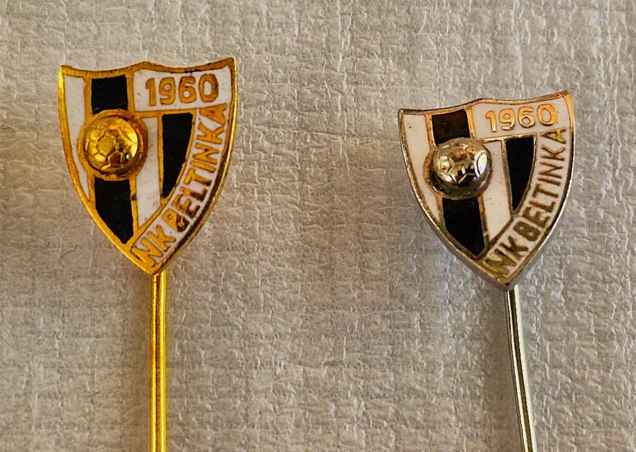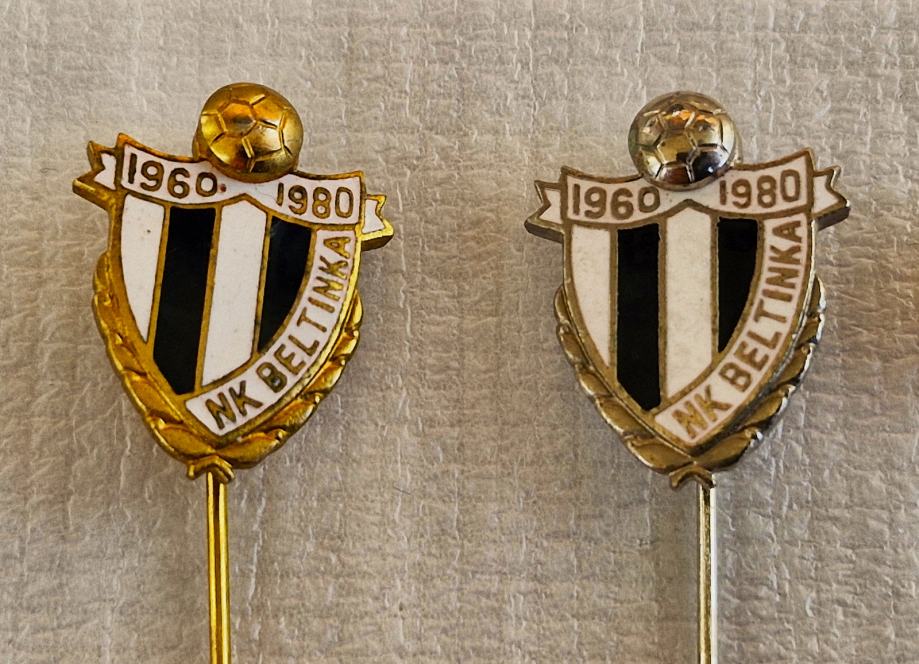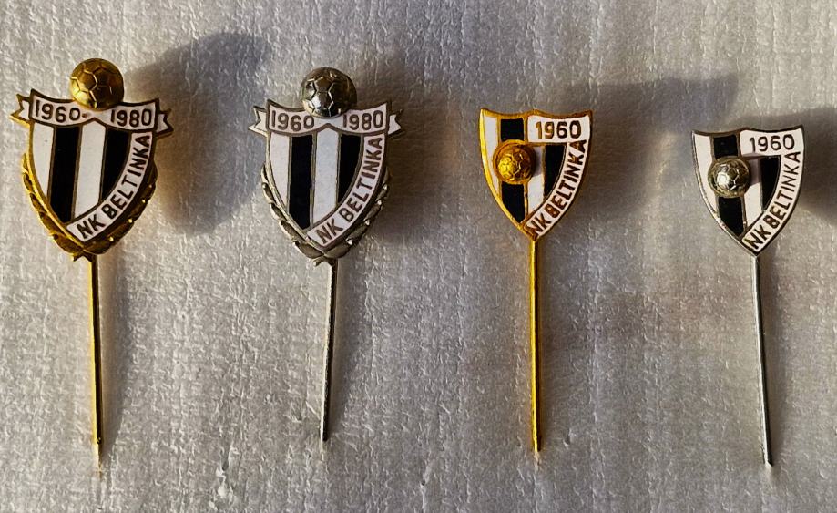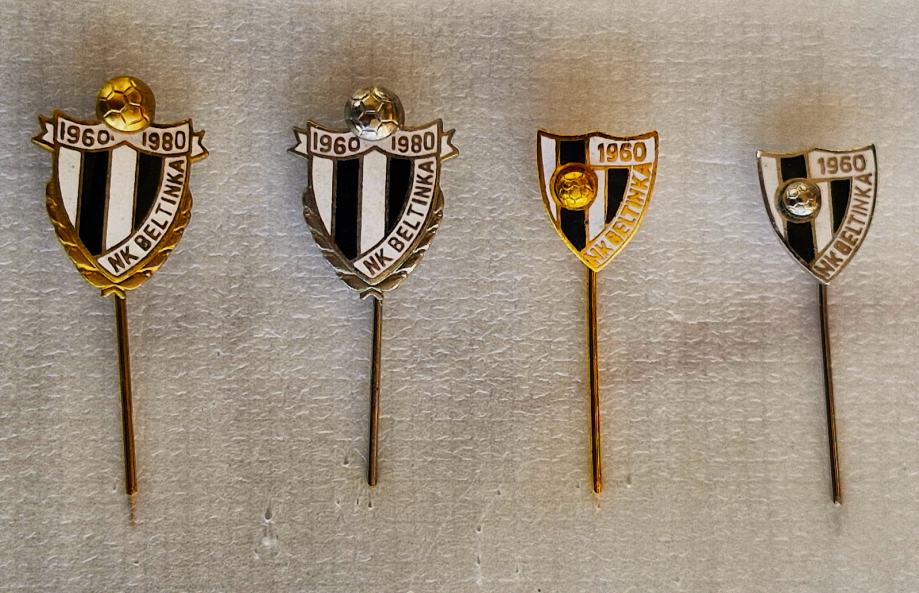 Prodajamo komplet štirih starejših (45 let) originalnih redkih slovenskih emajliranih nogometnih značk Nogometni klub Beltinka 1960 Beltinci. Značke so bile izdane ob 20. obletnici oživitve kluba in vključitve v tekmovanje v Pomurski nogometni ligi leta 1980. Brezhibno ohranjene. Izdelava IKOM Zagreb.