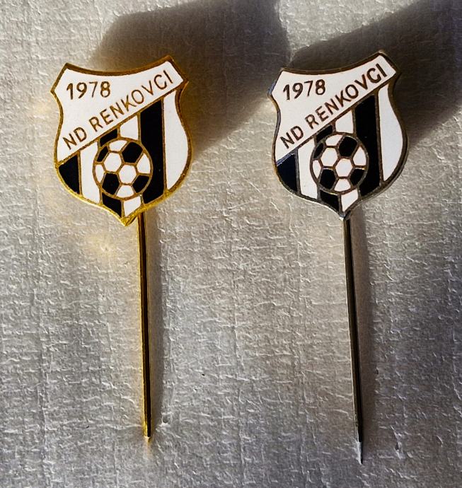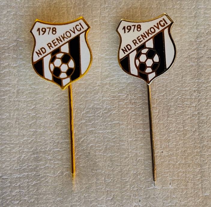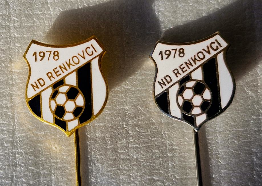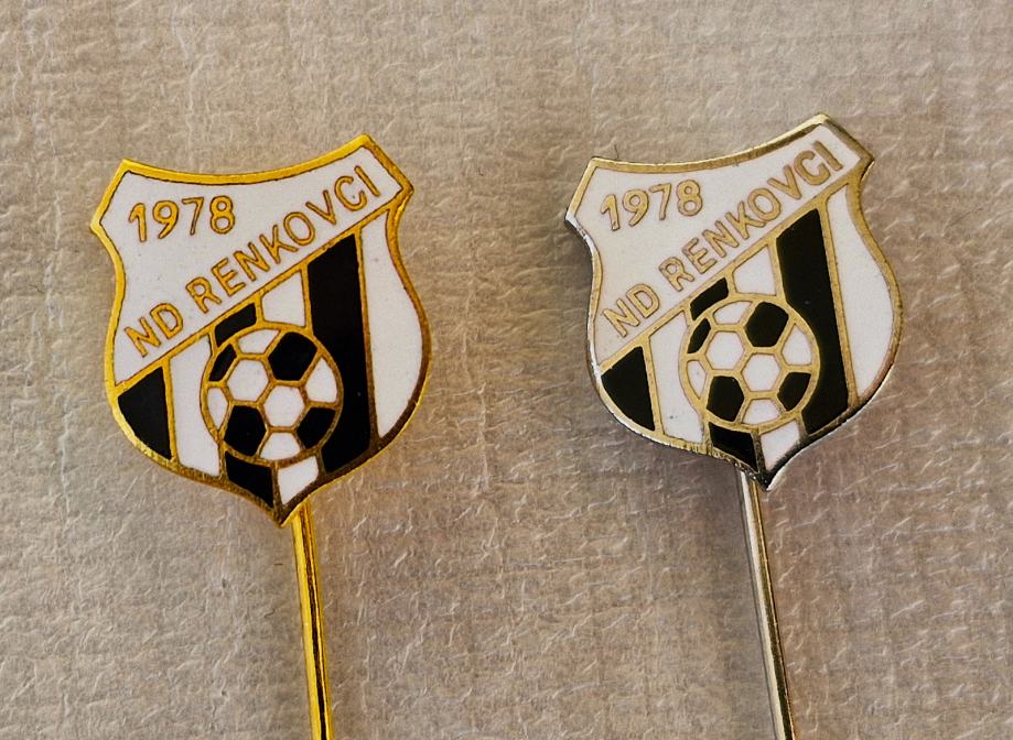 Prodajamo komplet dveh starejših (45 let) originalnih redkih slovenskih emajliranih nogometnih značk Nogometno društvo RENKOVCI 1978. Znački sta bile izdelane leta 1980. Brezhibno ohranjene. Izdelava IKOM Zagreb.
