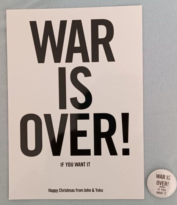 Prodam novo in brezhibno značko War is over! if you want it, premer 3 cm in zraven podarim sijoč miniplakat velikost 15x21 cm. Prevzem LJ-Vič, Rožna dolina, ne pošiljam, ne menjam, 040/854-637. Značka in minplakat sta iz razstave v Budimpešti, posvečena Yoko Ono in John Lennon.