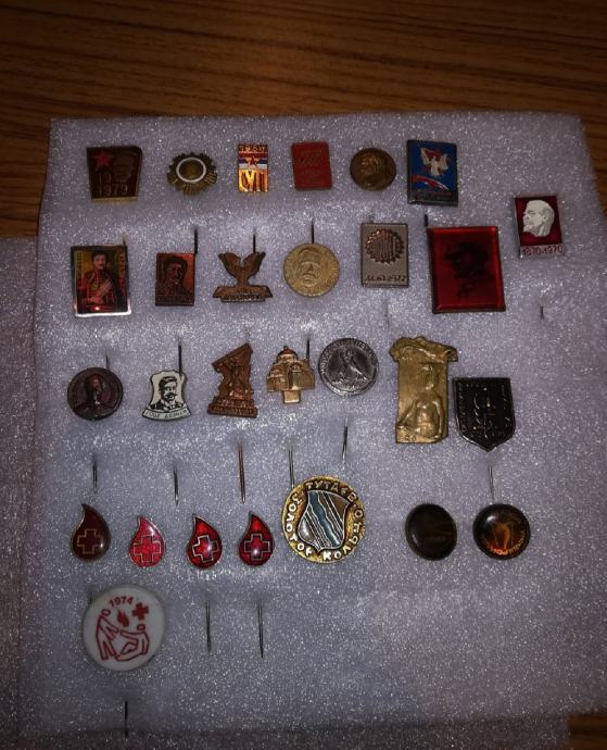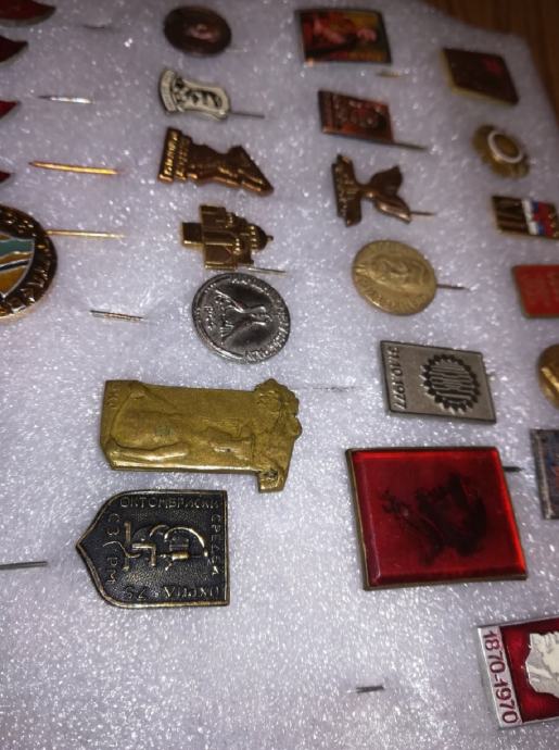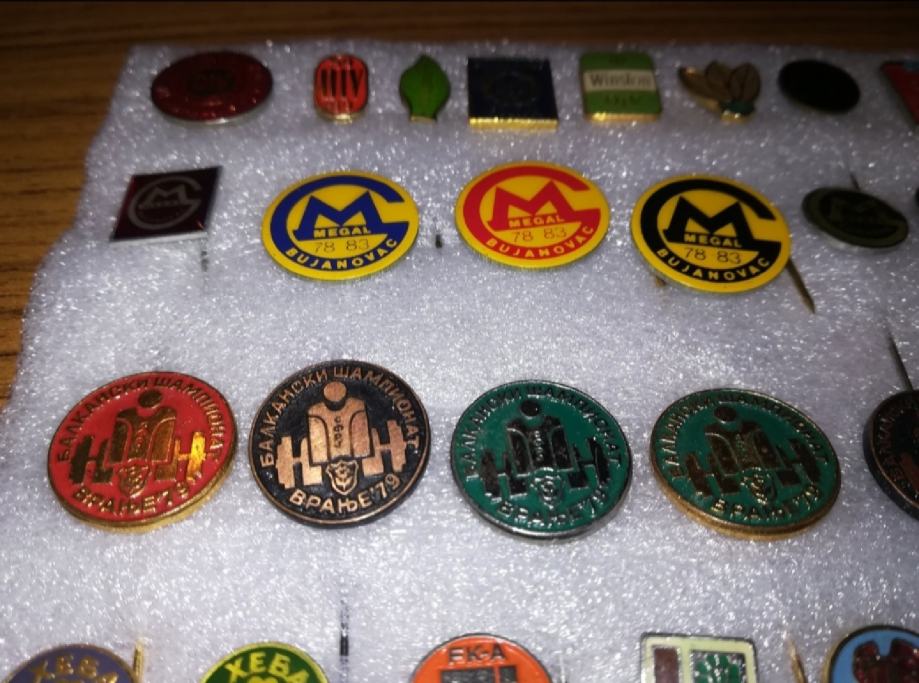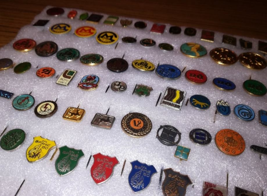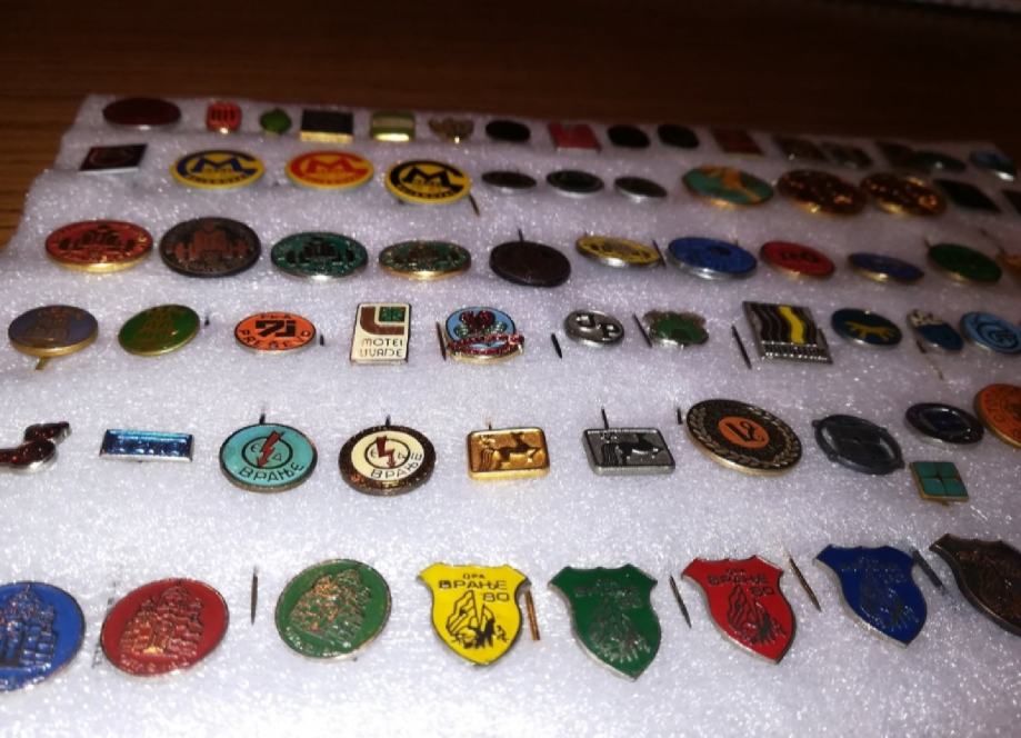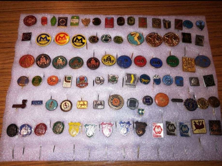 Zbirka značk stare Jugoslavije, podjetja Simpo, Jumko, ORA Vranje 79 let. itd. , pretežno jugoslovanski, do sredine osemdesetih let. Imam 110 značk.