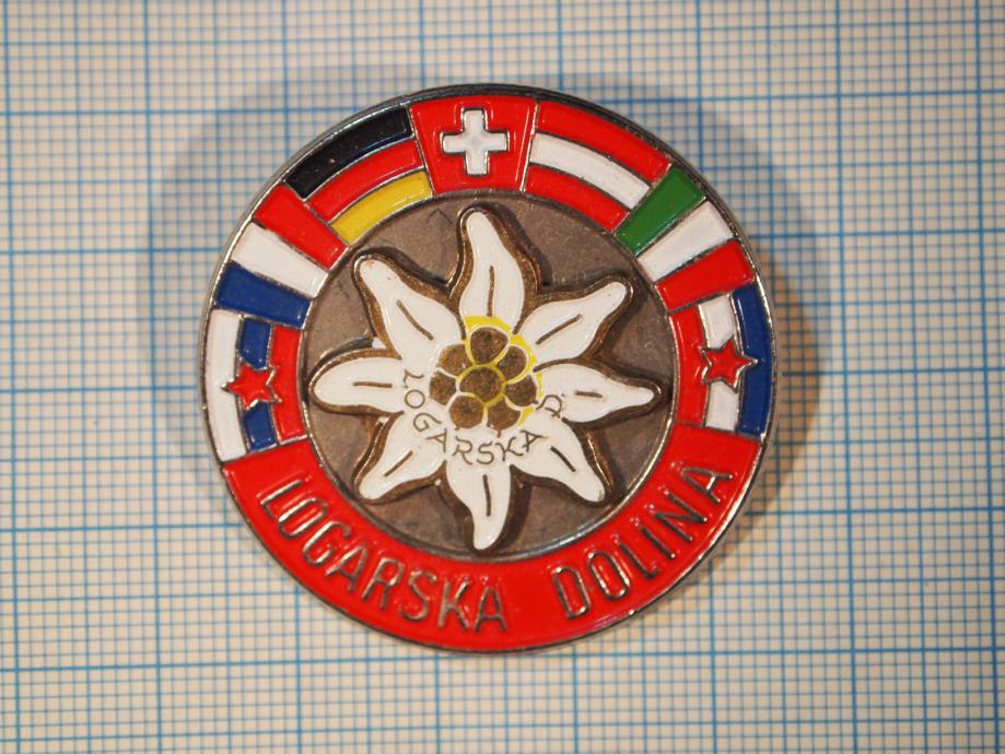 Značka LOGARSKA DOLINA, premer 4 cm.