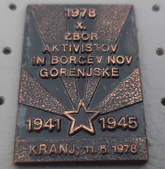 Značka NOB 10. Zbor aktivistov in borcev Gorenjske Kranj 11.6.1978