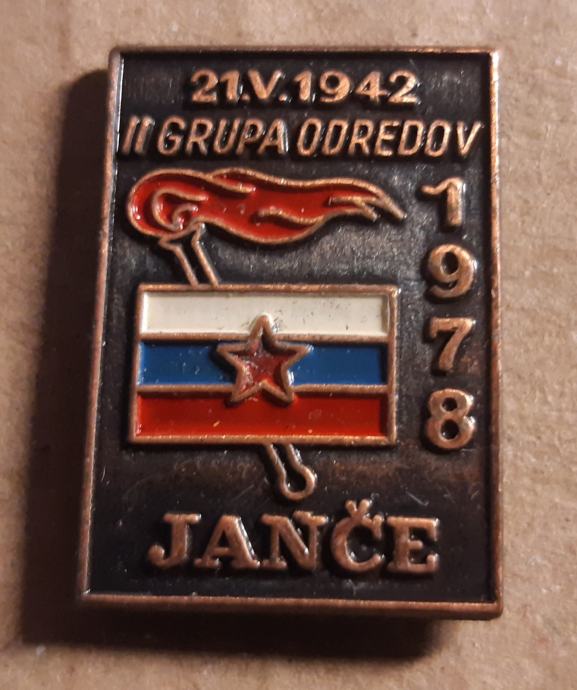 Značka NOB II. grupa odredov Janče 21.5.1942/1978 zastava Slovenije