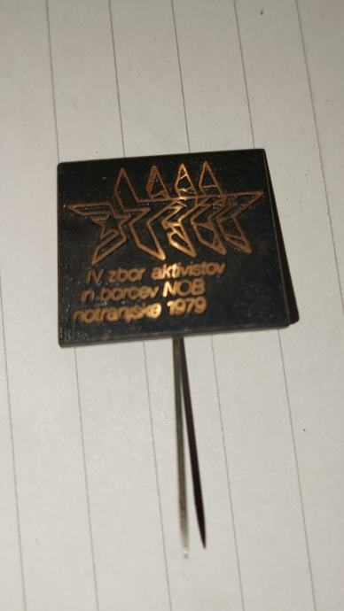 Prodam značko NOB IV. Zbor aktivistov in borcev Notranjske 1979.