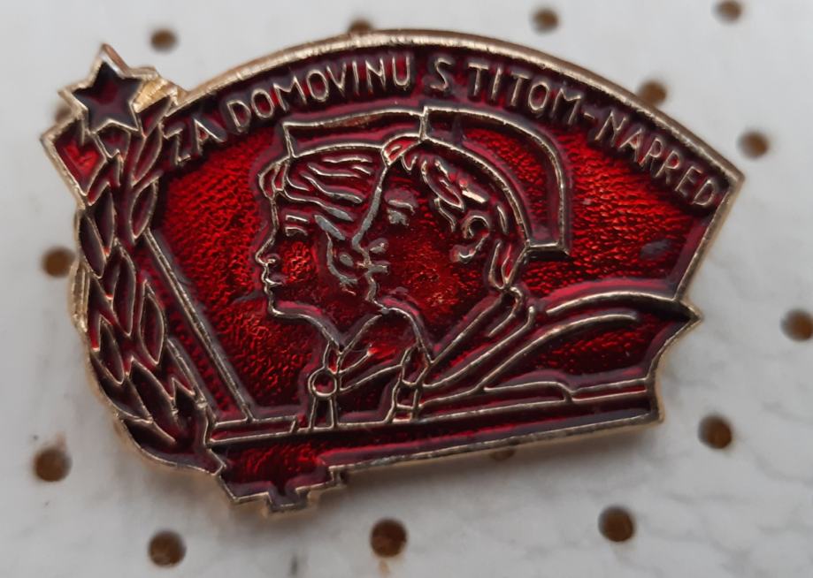 Značka Pionirji Za domovinu sa Titom naprijed na zaponko (14) 23x16mm