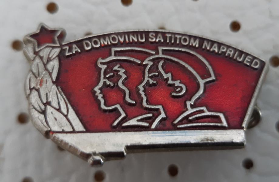 Značka Pionirji Za domovinu sa Titom naprijed na zaponko (6) 23x13mm