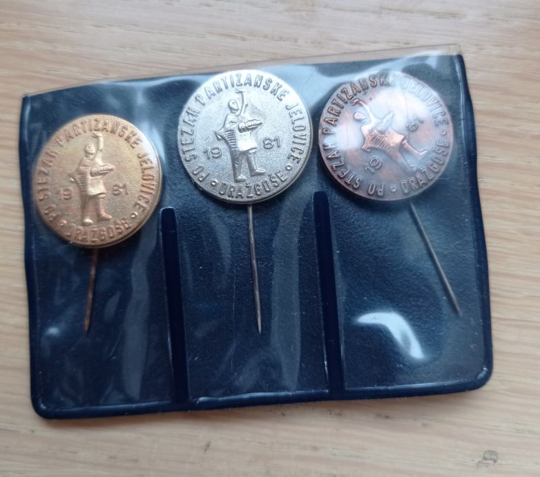 Prodam komplet značk po stezah partizanske Jelovice. Dražgoše 1981 Cena je za 3 značke.