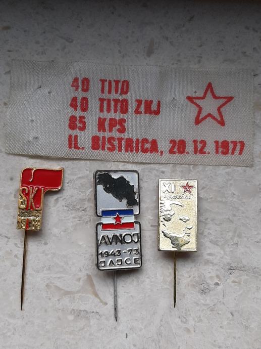 Prodam v kompletu tri vintage znacke stare jugoslavije 1977 z originalnim spominskim posvetilom