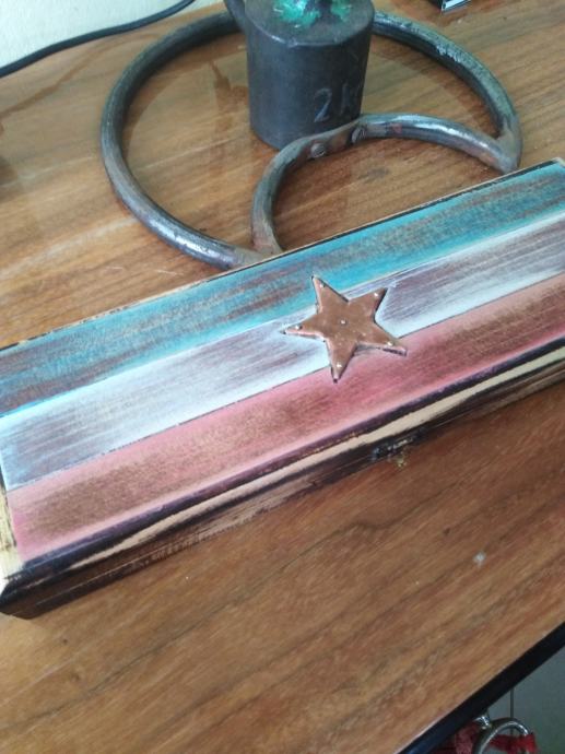 Unikatna lesena škatlica oblaznjena sa usnjem.