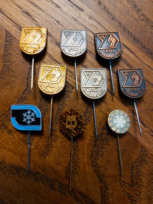 Devet značk slovenskih smučarskih klubov, stare originalne: