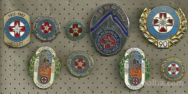 NAPRODAJ SET ZNAKOV GORSKE REŠEVALNE SLUŽBE, KATERI JE VIDEN NA PRILOŽENIH SLIKAH. CENA JE ZA CELOTEN SET SKUPAJ.