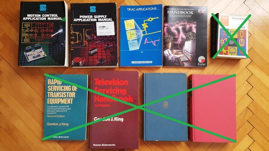 Prodam 4 (relativno) precej stare knjige (priročnike) v Angleščini s področja elektrotehnike, elektronike. Vse so bile last Očeta, ki/kateri pa zaradi upokojitve in drugih zdravstvenih omejitev nima z njimi več kaj za početi. Zato, preden jih trajno odvozim na Dinos, bom poskusil še tukaj, če bi komu kaj prav prišle. Glede na starost so kar odlično ohranjene, nič ni kaj strgano ali kaj podobnega, tisk (berljivost, ohranjenost črk) je še več kot odličen. Kar se tiče pa uporabnosti znanja v njih pa presodite sami po posnetkih kazala vsake izmed 4ih knjig na spodnjem DropBox albumu (povezavi). Okvirna cena v oglasu je za kos, ob nakupu vsaj treh knjig primaknem tudi kakšen popust. Rad bi seveda prodal vse 4 v kompletu, itak se pa lahko kupi tudi posamično knjigo.