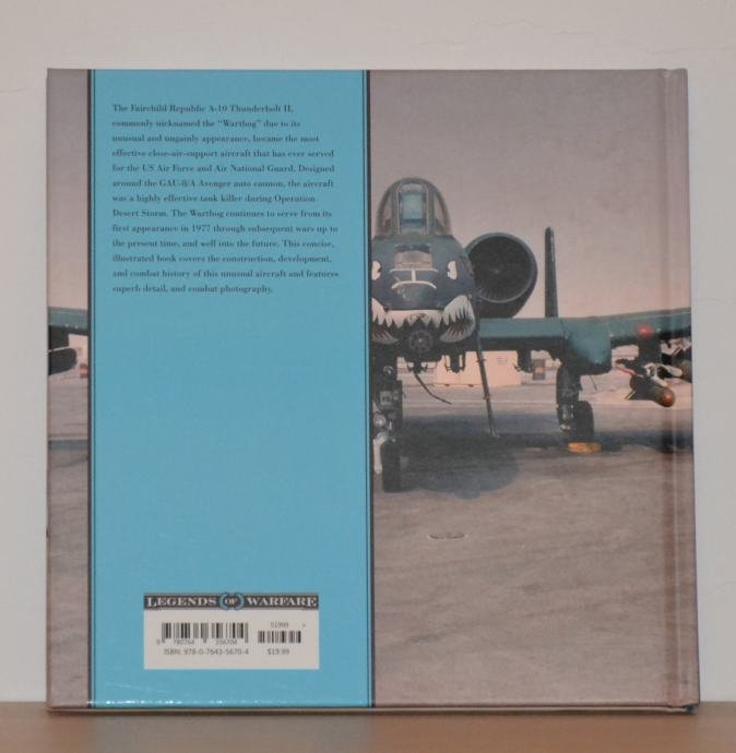 Kratek opis v angleškem jeziku: The Fairchild Republic A-10 Thunderbolt II, commonly nicknamed the "Warthog" due to its unusual and ungainly appearance, became the most effective close-air-support aircraft that has ever served for the US Air Force and Air National Guard. Designed around the GAU-8/A Avenger autocannon, the aircraft was a highly effective tank killer during Operation Desert Storm. The Warthog continues to serve, from its first appearance in 1976 through subsequent wars up to the present time, and well into the future. This concise, illustrated book covers the construction, development, and combat history of this unusual aircraft and features superb detail and combat photography. Part of the Legends of Warfare series.