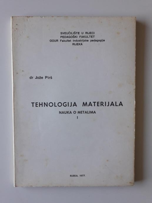 JOŽE PIRŠ, TEHNOLOGIJA MATERIJALA, NAUKA O METALIMA